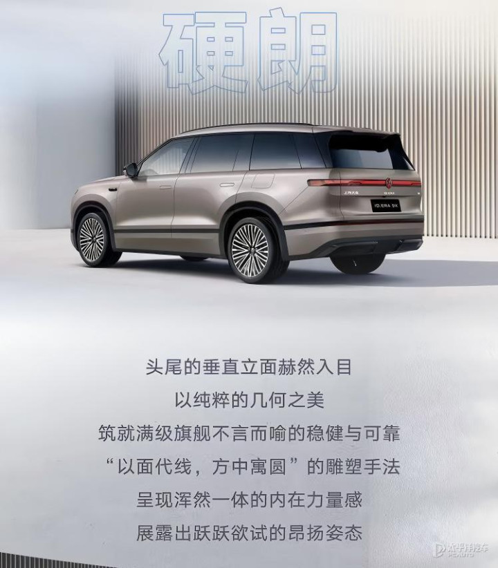 作为大众ID.ERA序列的首款车型,ID.ERA(查成交价|车型详解)9X定位于大型增程式SUV,搭载65.2kWh大容量电池,纯电续航突破400公里(CLTC标准)。