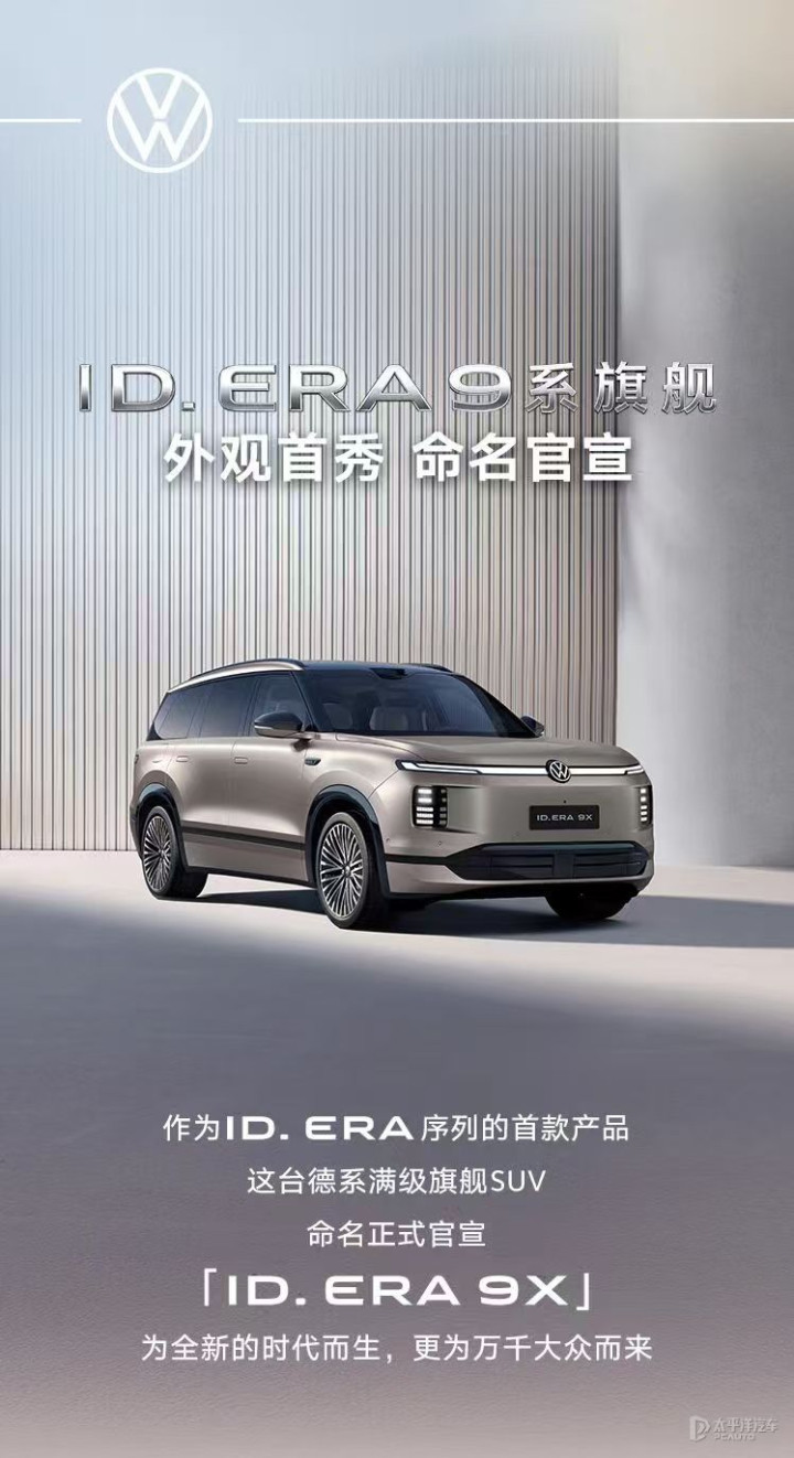 在工信部最新一期的申报图中,我们看到了上汽大众ID.ERA9X的身影,与此同时,上汽大众官方也将新车官图释放出来。
