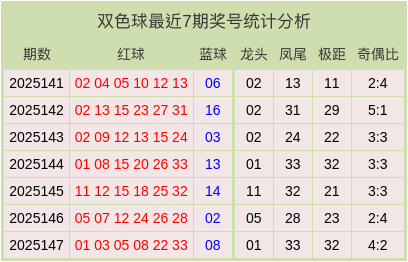 上期双色球的开奖号码中,首尾组合为01+33,极距为32,奇偶比为4:2。