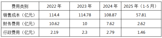 财务费用:2022年至2024年累计下降 28.3%(1061.9 → 761.6),主因债务结构调整(短期借款减少);2025年前5月同比再降 28.4%(366.5 → 262.4),反映融资成本优化。